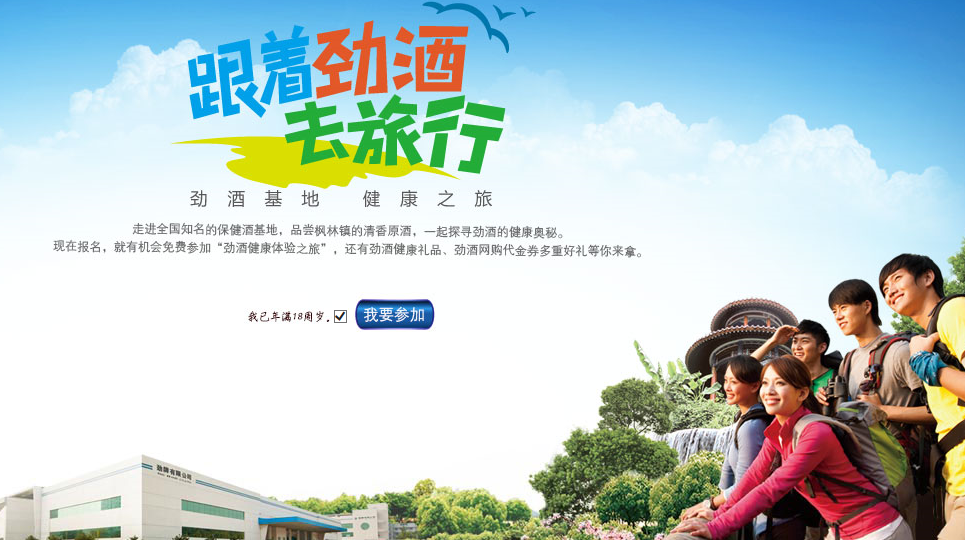 自2007年起,索象助力劲牌在全国范围内发起了旨在摒弃不健康饮酒方式,树立适量、健康、文明饮酒理念的声势浩大的主题公益活动健康饮酒中国行。另外,还助力劲酒开展了跟着劲酒去旅行的大型互动体验活动,向全国热爱健康旅行的人们提供免费旅游的机会,让消费者亲自感觉健康饮酒的好处,并到生产地去观摩劲酒的酿造过程。